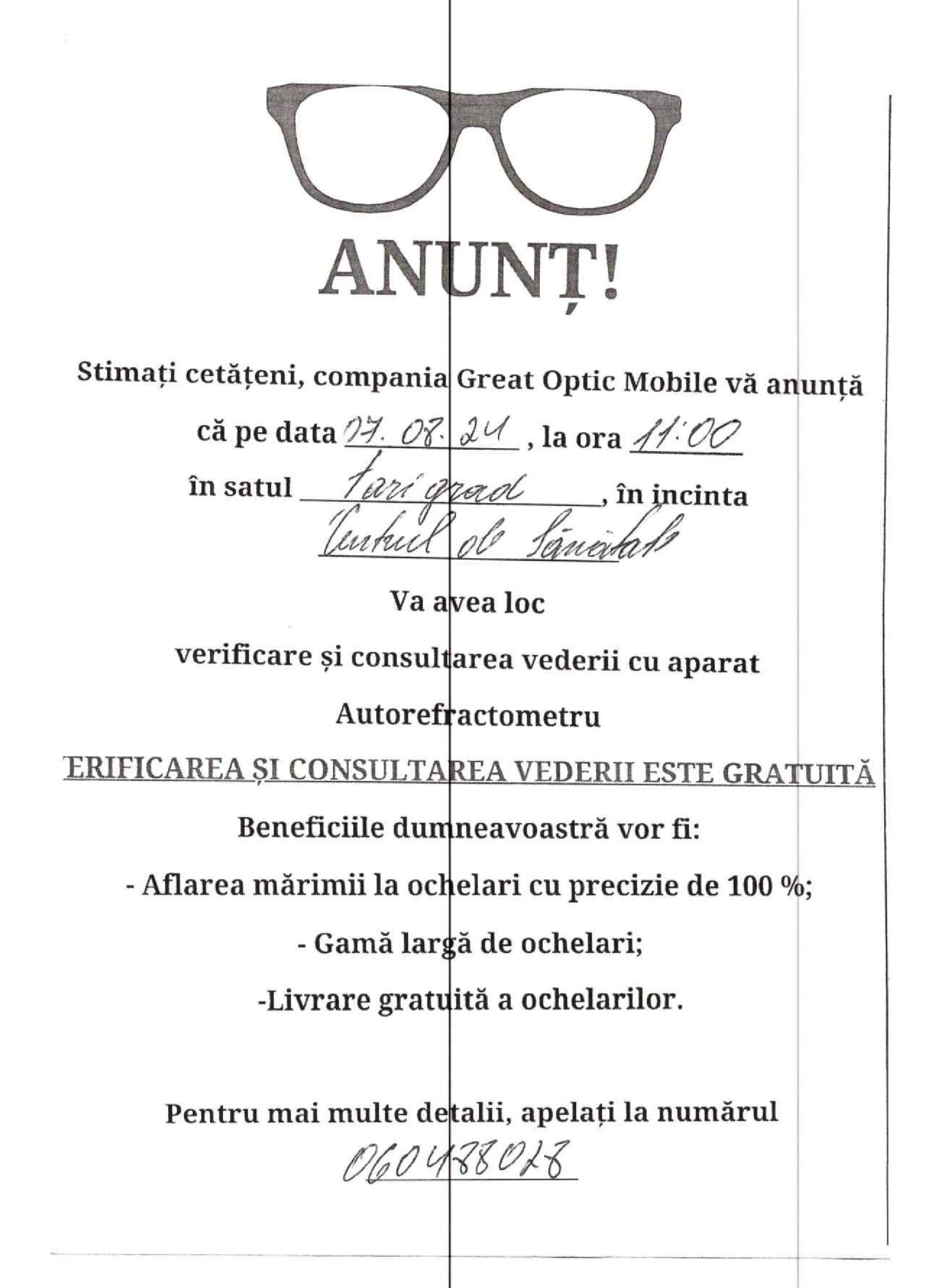 Anunț: Verificarea și consultarea vederii